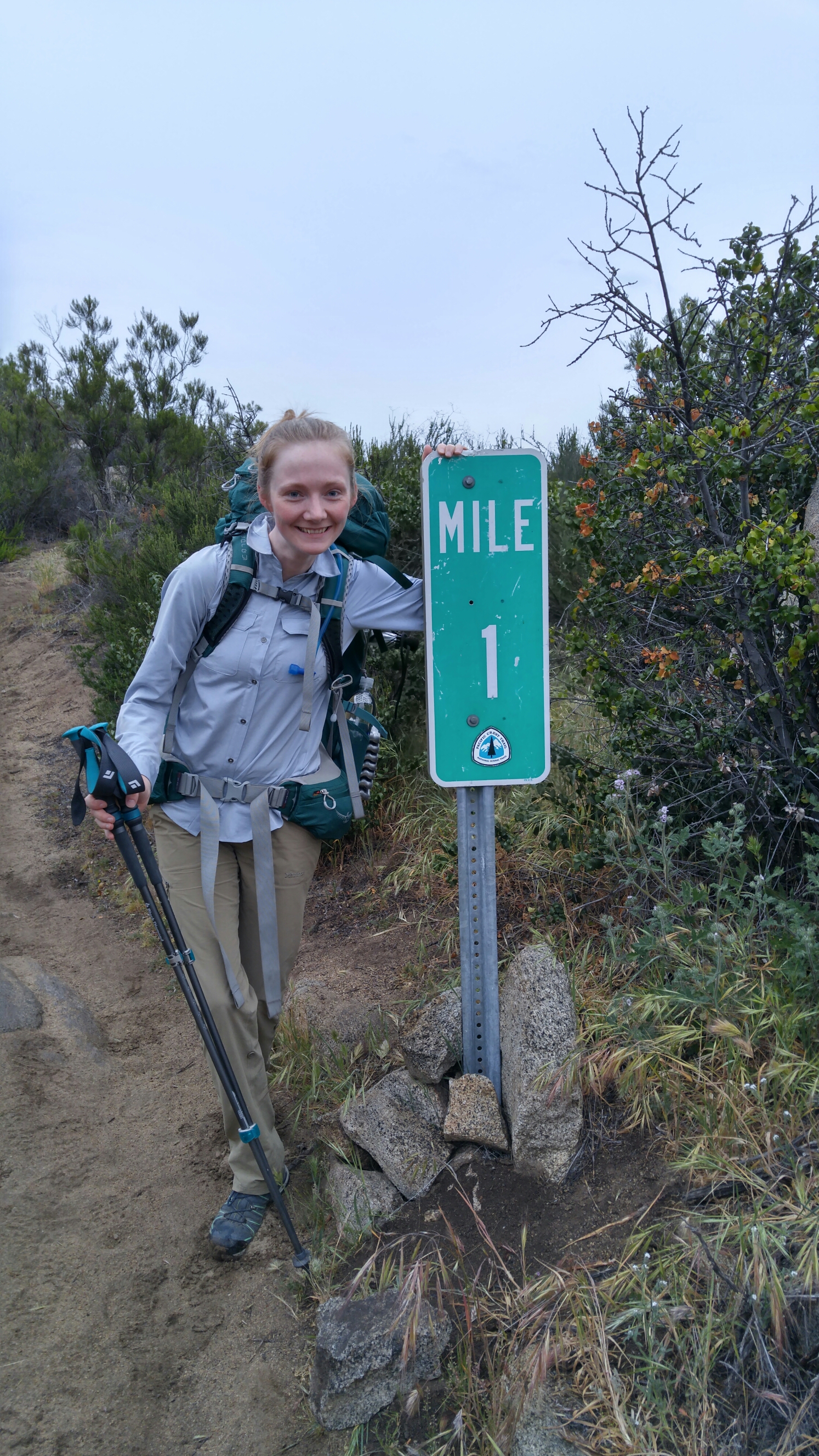 For the first couple miles after setting off from the Campo monument, I attempted to keep up with the people I had started with. It was a lovely walk, and we were all together when we hit the most important milestone of all: the first one.
