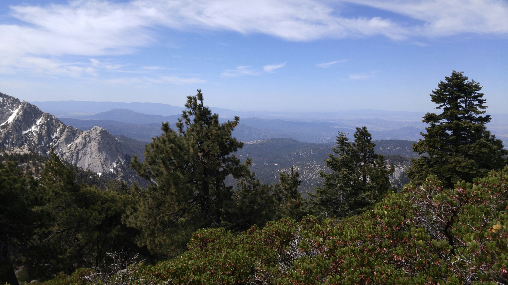 Six hours in, we had traveled a whopping 6 miles. We were hiking in just the sort of area I love–tall pines, white rocks, and frequent gaps that displayed the Anza-Borrego desert sinking as we drew higher. But the elevation gain was killing us.