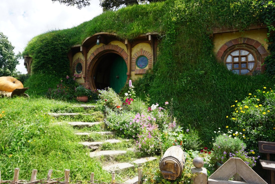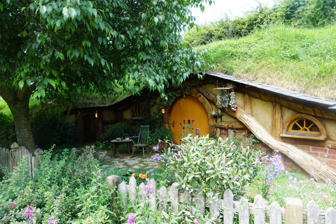 Hobbiton is incredible. It’s 12 acres in the middle of an already gorgeous 12,000 acre sheep farm. When I was first researching the trip, many blogs said there wasn’t much there but sad empty holes, so my expectations were low. What I didn’t know was yay those reviews were written before the Hobbit trilogy was filmed. For those films, the property owner requested that the set be made of permanent materials. The result: 40+ gorgeous dwellings, complete with chimneys, clotheslines, gardens, windows, and beautiful round doors–everything except space to live inside. Those scenes were shot in a studio π