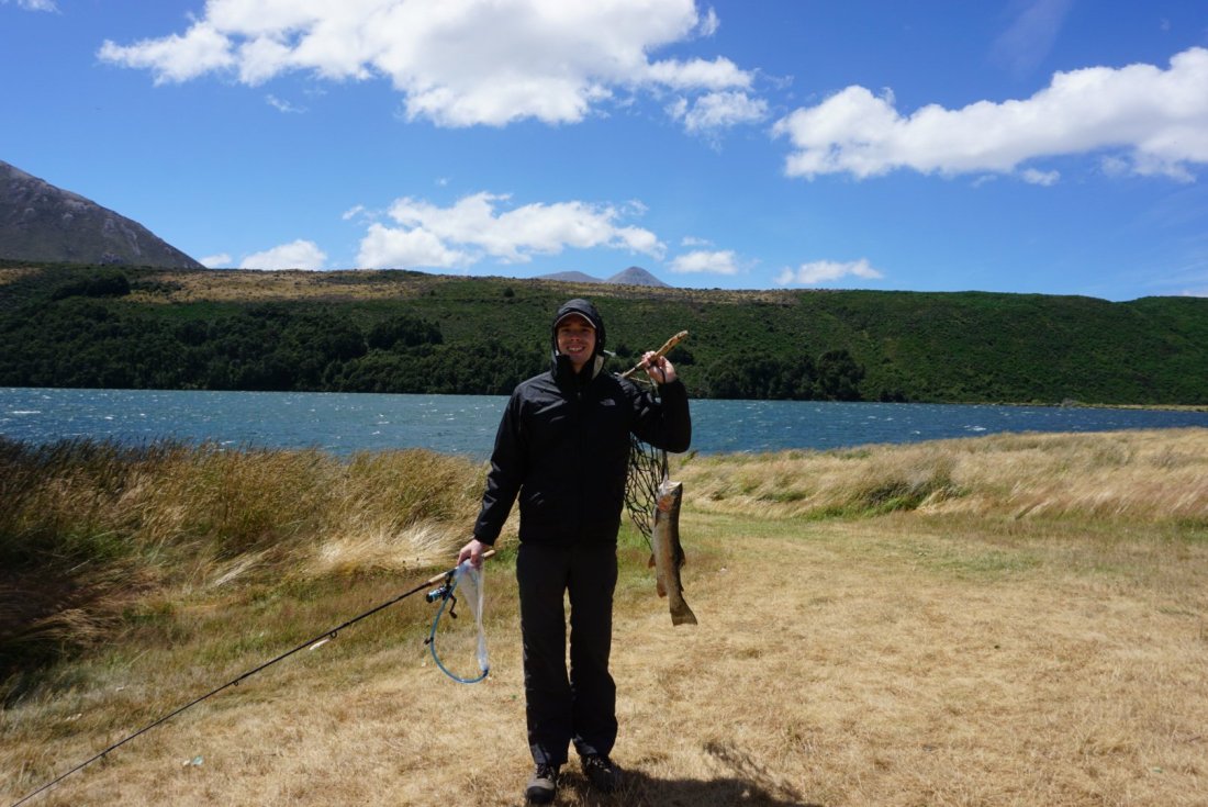 So my brother in law is a bit of a fisherman. Like, probably more of an expert on fishing than I am on hot chocolate, and that’s an accomplishment. He was kinda bummed that he hadn’t caught one in New Zealand. The extremely awesome DOC worker at Arthur’s Pass had told him about a fishing spot on Lake Grasmere, so Olivia and I dropped him off in the morning and then went back to our campground and took off for Helicopter Hill. On foot, though–flying is not necessary to get there.