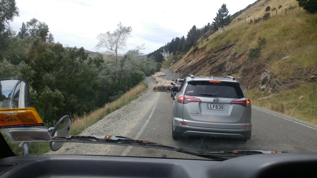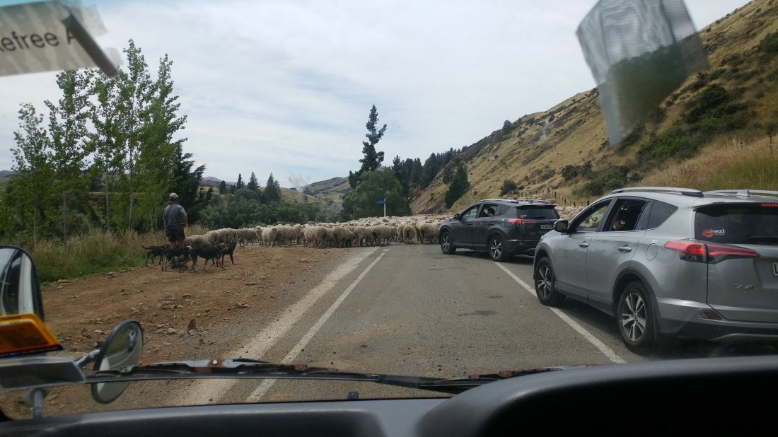 The shepherd/dog team managed to clear one of the lanes of traffic, so we made it to the other side and saw the gate that some of the sheep were finally getting to. I like to think, two weeks later, that the sheep are all in there by now.
